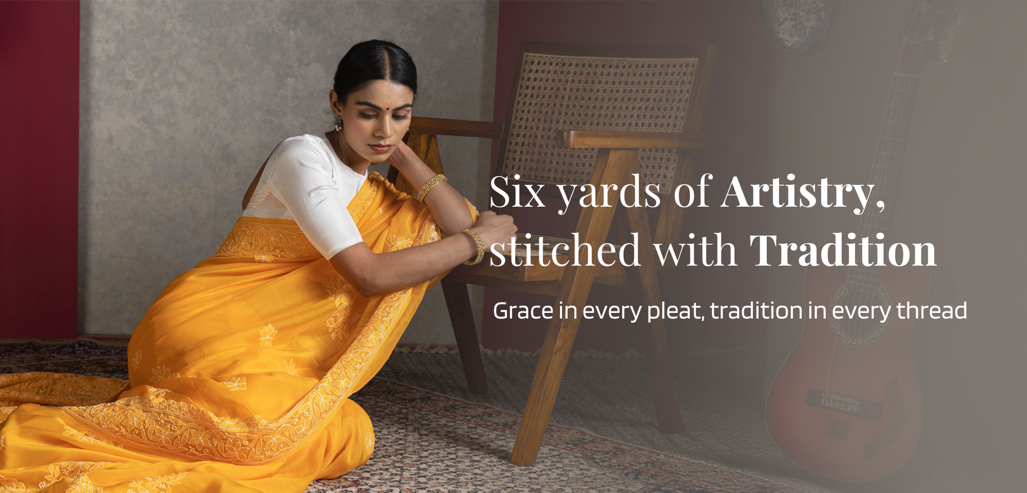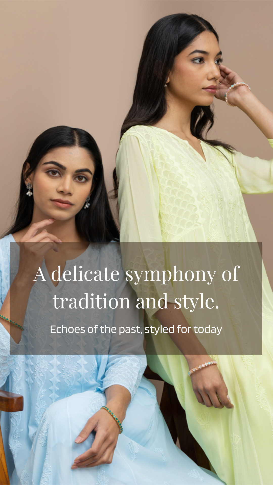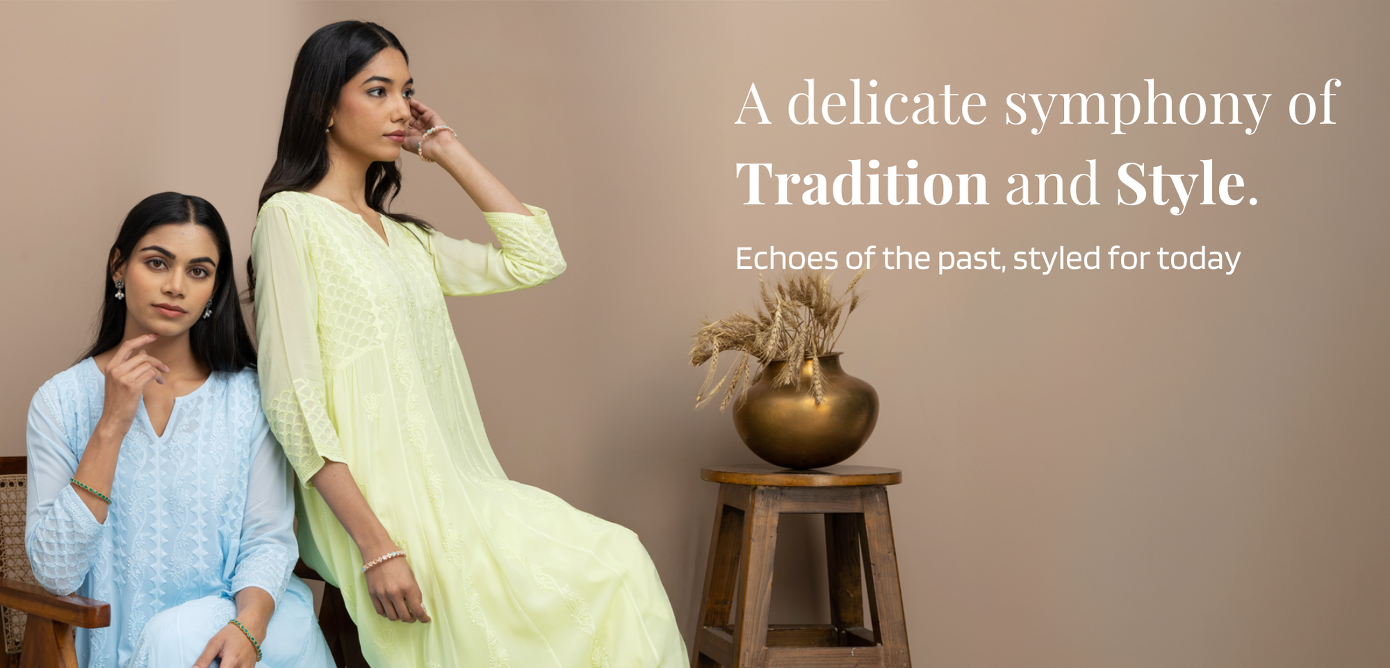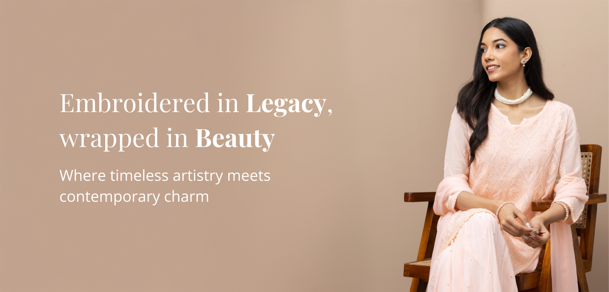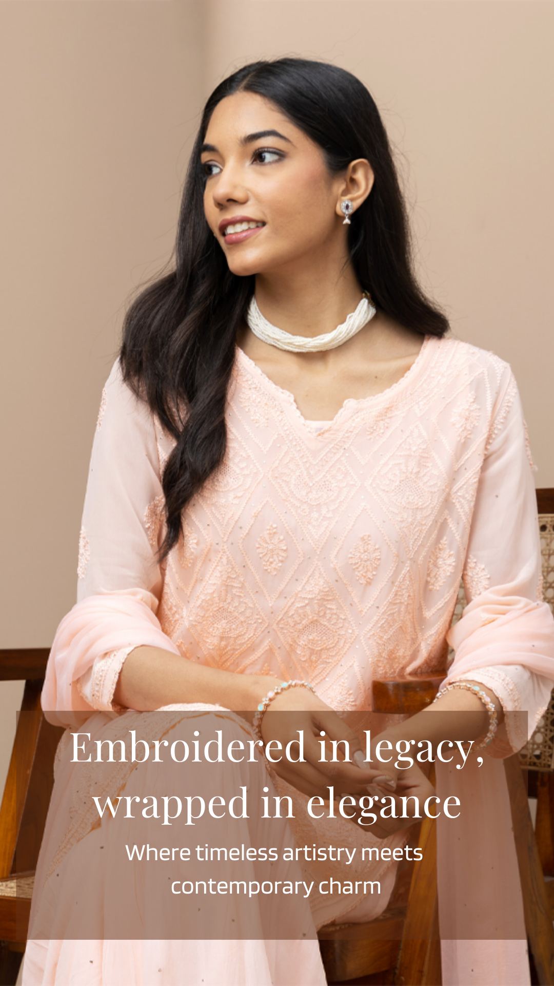 In the gentle dance of needle and thread, our Chikankari masterpieces whisper the secrets of timeless elegance and the essence of heritage.